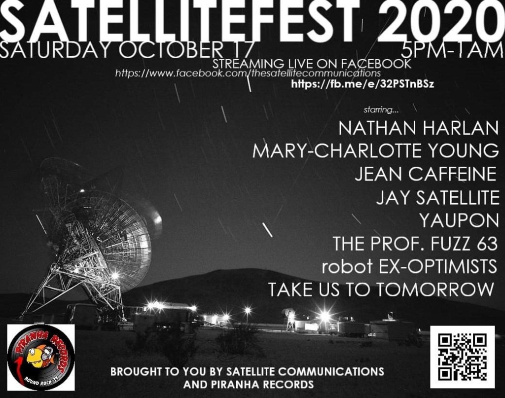 Our next livestream show will be at Satellite Fest 2020, brought to you (virtually) by our friends at Satellite Communications and Jay Satellite (of Hutto TX). The virtual fest starts at 5:00 PM on Saturday Oct 17 and runs until 1:00 AM. PF63 plays at 10:00 PM. Livestreams will broadcast from each band’s FB page AND from the event page:
