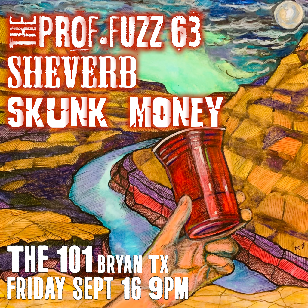 Friday Sept 16 in Bryan at The 100 with Skunk Money, and Sheverb! https://www.facebook.com/events/569801704653873