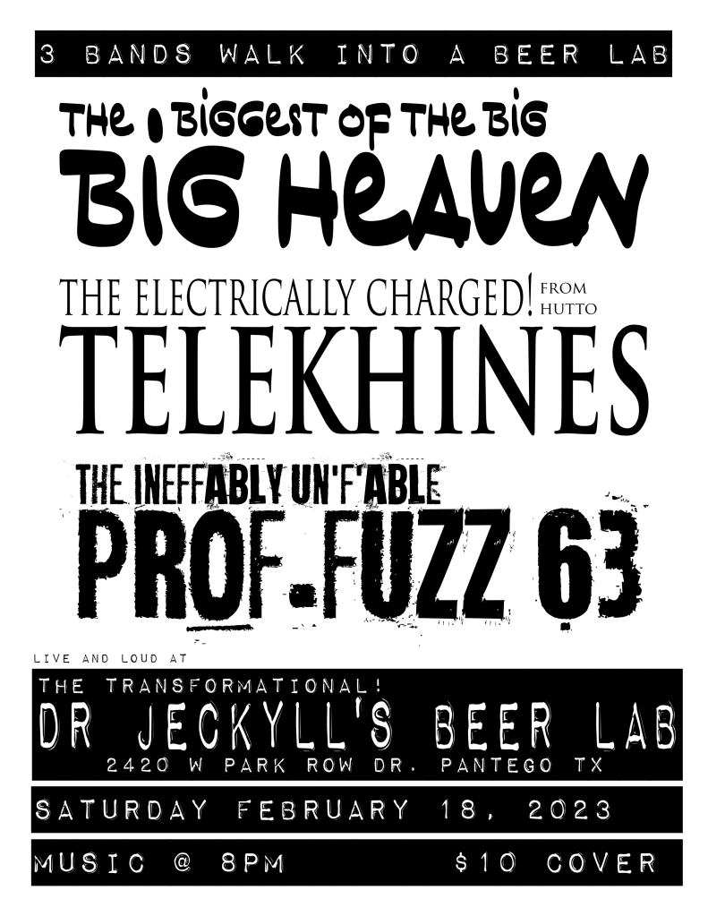 Next up is Dr. Jeckyll’s Beer Lab in Pantego TX with Telekhines and Big Heaven.