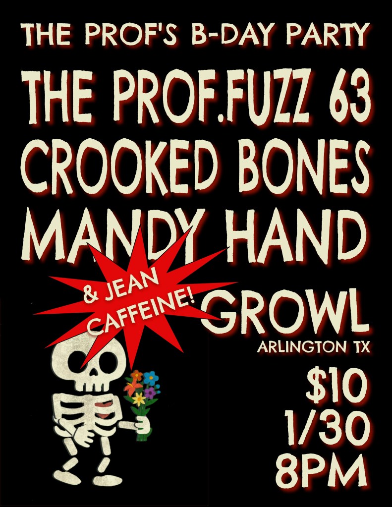 we appreciate you and your support of our silly little band. see ya in a couple of weeks at growl for the professor’s birthday bash with guests jean caffeine, mandy hand, and crooked bones!