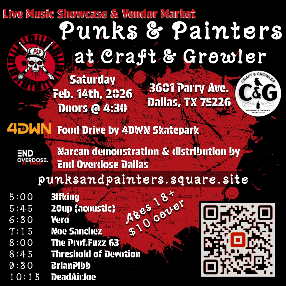 Next: Dallas! professorfuzz no comments February 3, 2026 next up: a punks and painters show at craft & growler in dallas. the show starts early (5:00 PM) and we play at 8:00 PM. details on the flyer. Share this: Share on X (Opens in new window) X Share on Facebook (Opens in new window) Facebook Like Loading... Related