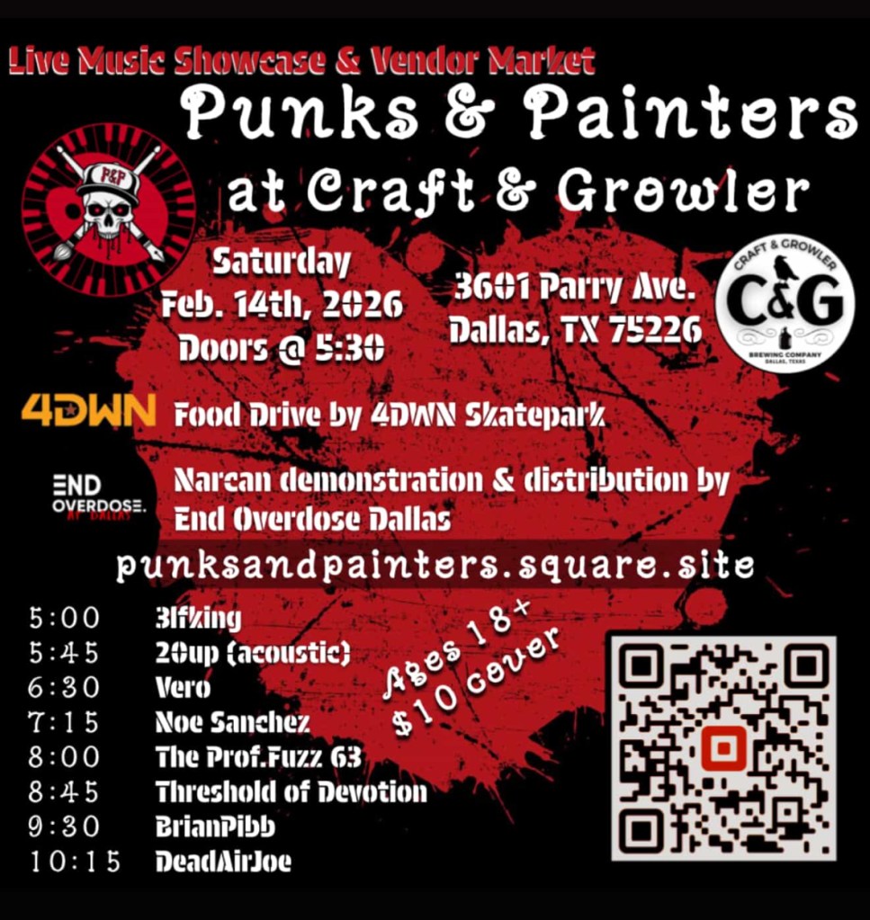 next up: a punks and painters show at craft & growler in dallas. the show starts early (5:00 PM) and we play at 8:00 PM.
