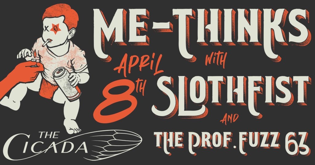 Oh hey! This Saturday we make our first appearance at The Cicada in Fort Worth with friends The Me-Thinks, and Slothfist! It’s gonna be a LOUD one! We kick things off at 9. 1002 S Main. Fort Worth TX https://www.facebook.com/events/968999100931538